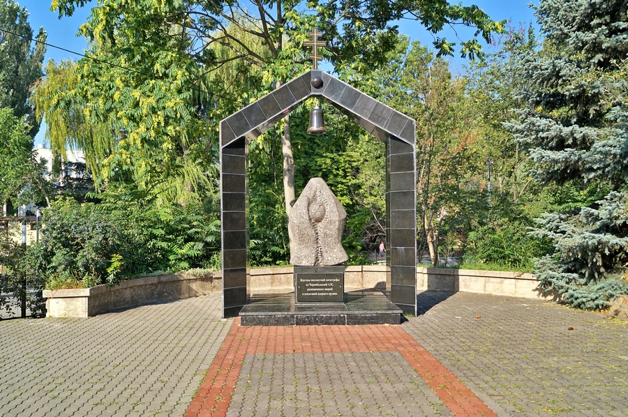 Мемориал жертвам Чернобыля установлен рядом со входом в парк Гагарина в 2007 году, спустя ровно 21 год после катастрофы в Чернобыле. Над каменной скульптурой, в которой прослеживаются очертания сложенных ладоней, установлена арка с колоколом. Рядом расположены чёрные мемориальные плиты с именами погибших в результате аварии в Чернобыле. Под памятником заложена капсула, в которой хранятся имена умерших.