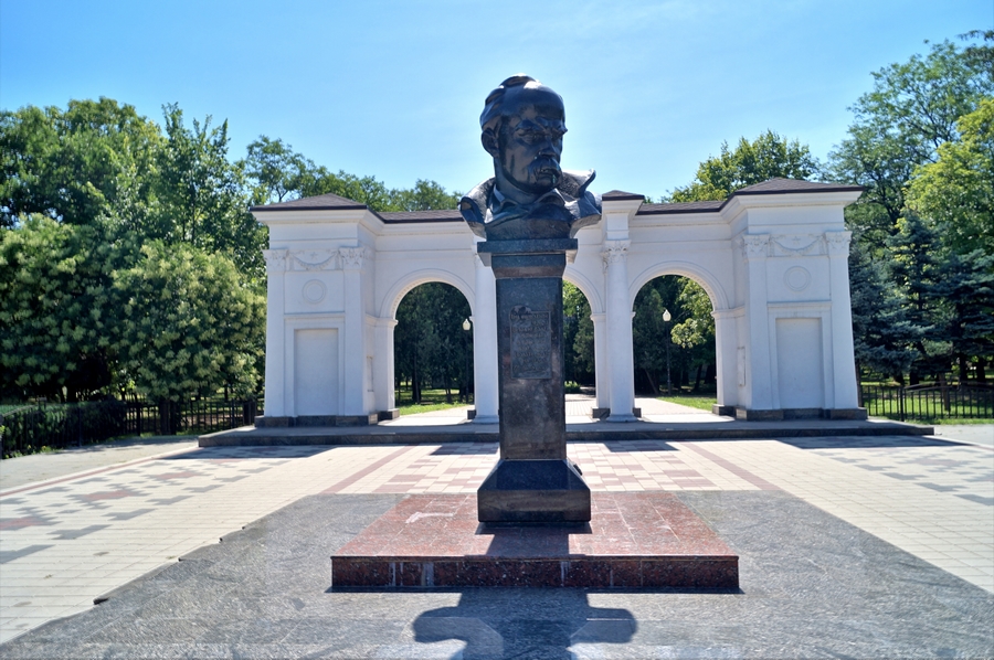 Тарас Шевченко заложил основы традиционной украинской литературы. Его произведения до сих пор изучаются литературоведами, как одни из выдающихся и значимых. Памятник был установлен в 1997 году и является подарком Симферополю от города Калуш. На постаменте установлен чёрный каменный бюст Тараса Шевченко. Под ним находится памятная табличка с высеченной надписью, посвящённой знаменитому писателю. Памятник Тарасу Шевченко — у входа в парк им. Шевченко (ул. Севастопольская). Установлен в 1997 году как подарок Симферополю от города Калуш (Ивано-Франковская обл.). Является объектом культурного наследия Республики Крым регионального значения.