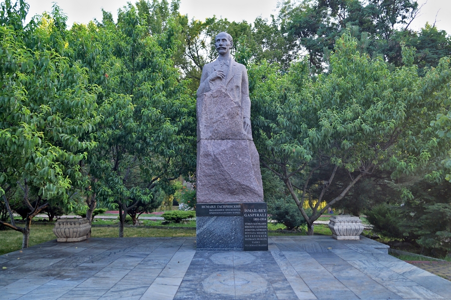 Исмаил Гаспринский являлся выдающимся просветителем XIX-XX веков. Он выступал за объединение тюркских народов и открытие Востока для Европы. За его просветительскую деятельность, в том числе, выпуск газеты «Терджиман», Гаспринский был номинирован на Нобелевскую премию. Фигура просветителя, переходящая в камень, установлена на чёрном мраморном постаменте. Памятник Исмаилу Гаспринскому — памятник крымскотатарскому просветителю, издателю и политику, получившему известность и признание среди всего мусульманского населения Российской империи (скульптор — А. Э. Алиев). Является объектом культурного наследия Республики Крым регионального значения.