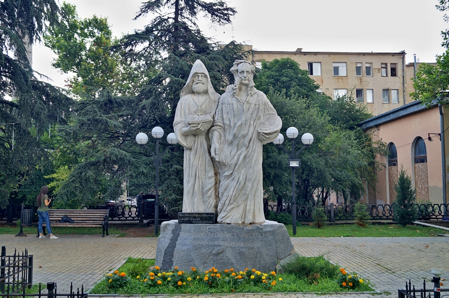 Памятник посвящён художнику и меценату, Ивану Айвазовскому, и его брату, просветителю и священнослужителю, Габриэлю Айвазовскому. Они оба родились и выросли в Крыму. Иван прославился талантом художника и щедростью, а Габриэль знал 12 языков и являлся образованным учёным, специализировавшимся на истории Востока. Скульптура изображает братьев, стоящих рядом. Один из них держит в руках палитру, а другой – Библию. Памятник братьям Айвазовским, пер. Совнаркомовский (у пл. Советской). Скульпторы — народный художник Армении Левон Токмаджян с сыновьями, архитектор — заслуженный архитектор Украины В. Кравченко. Установлен в 1999 году по инициативе и на средства армянского национального общества Крыма «Луис».