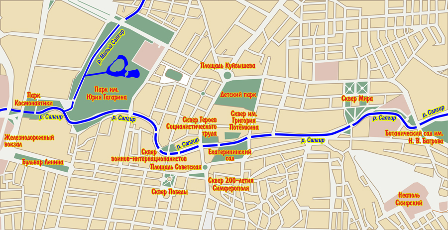 Технологии виртуальной и дополненной реальностейНабережная реки Салгир в Симферополе. Цифровой СимферопольРека Салгир — самая длинная река Крыма, имеющая важное хозяйственное и рекреационное значение. Служит одним их основных источников пресной воды и является наиболее популярным местом отдыха жителей и гостей столицы Крымского полуострова. Текущая почти через всю территорию полуострова Крым река начинается на горных склонах массива Чатыр-Даг, истоком ее по праву считается слияние рек Ангара и Кызылкобинка. Напитавшись с горных источников, Салгир спускается к Симферополю, формируя близ города крупное Симферопольское водохранилище. Далее водоток устремляется степной Крым. И в конце пути впадает в залив Сиваш на западе Азовского моря. Протяженность речного русла составляет 232 км, ширина колеблется от 3 до 15 метров. Водосборная площадь бассейна около 4 тыс. кв. км. Температура воды зависит от общих температурных условий окружающей среды. Максимально низкие значения характерны для зимнего периода, максимально высокие наблюдаются обычно в июле и августе. Вместе с 14 притоками река образует крупнейшую речную систему Крыма. Главные притоки: Биюк-Карасу, Зуя, Бурульча, Беш-Терек (правые); Джума, Тавель, Курцы, Славянка (левые). Крупные поселения на реке Салгир: г. Симферополь, пгт. Грэсовскй, пгт. Гвардейское, пгт. Нижнегорский, с. Амурское. Бассейн реки Салгир богат на природные достопримечательности. Здесь находятся многочисленные живописные пещеры и урочища: Кизил-Коба, Чокурча, Ени-Сала, Карасу-Баши, Волчий грот. Предполагается, что название реке дали жившие здесь крымские татары. Салгир — в переводе «вода, приходящая с гор». В начале своей истории Салгир относился к полноводным рекам, разливаясь на ширину до 700 метров. Воды его текли значительно быстрее, чем сейчас, и представляли значимую угрозу для окружающих. В период паводков река часто выходила из берегов, бурлящий поток сносил все на своем пути, зачастую становясь причиной гибели людей. Салгир маловоден и абсолютно безопасен. Питается Салгир дождевыми, талыми снеговыми и подземными карстовыми водами. Резкое таяние снега весной, равно как и обильные осадки, способствуют многократному увеличению потока и стремительному бурному течению. Наиболее полноводен Салгир с конца февраля по май. В летний период река мелеет и местами пересыхает. Река протекает через весь город и делит его на две части. Купаться в Салгире в черте города строго запрещено. Редко кто наушает данный запрет: вода достаточно мутная и не внушает доверия. Вдоль реки обустроена набережная и разбиты красивые парки: Большое количество зеленых насаждений, детские игровые площадки, уютные кафе делают берега Салгира излюбленной зоной для неспешных прогулок и отдыха.
